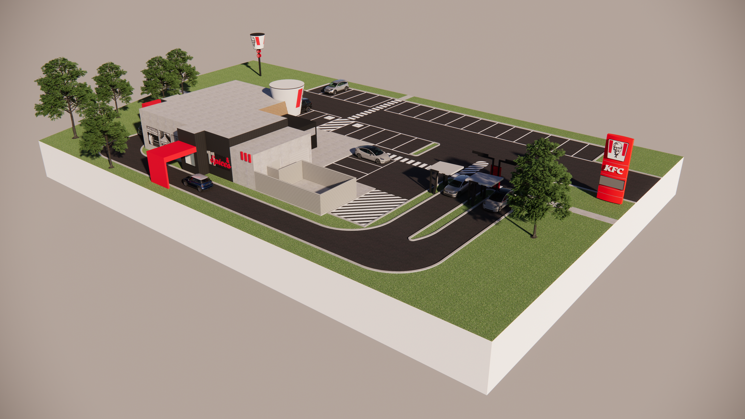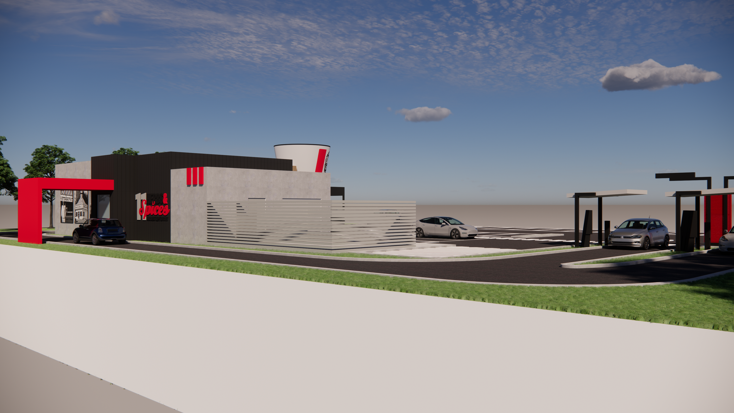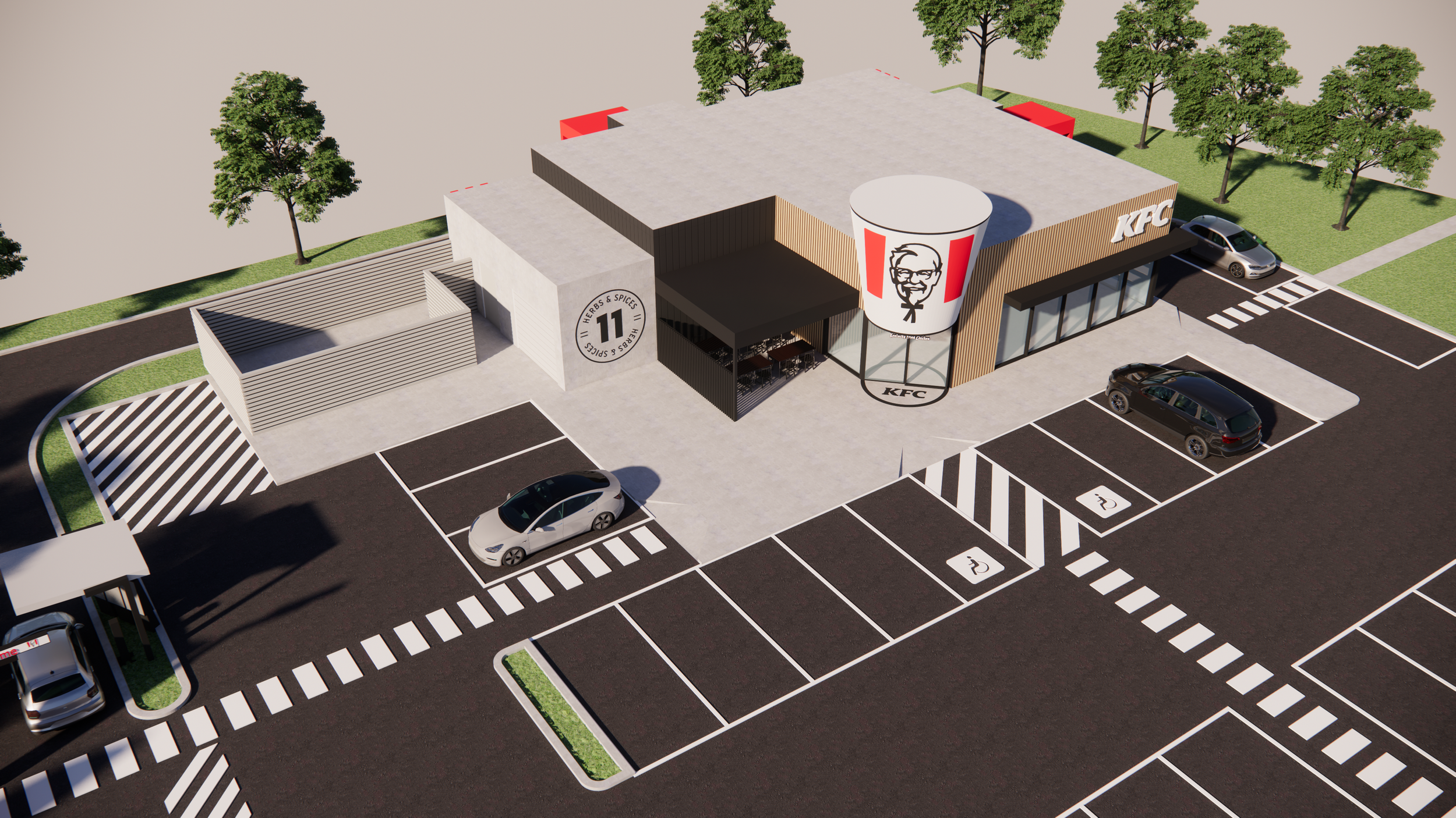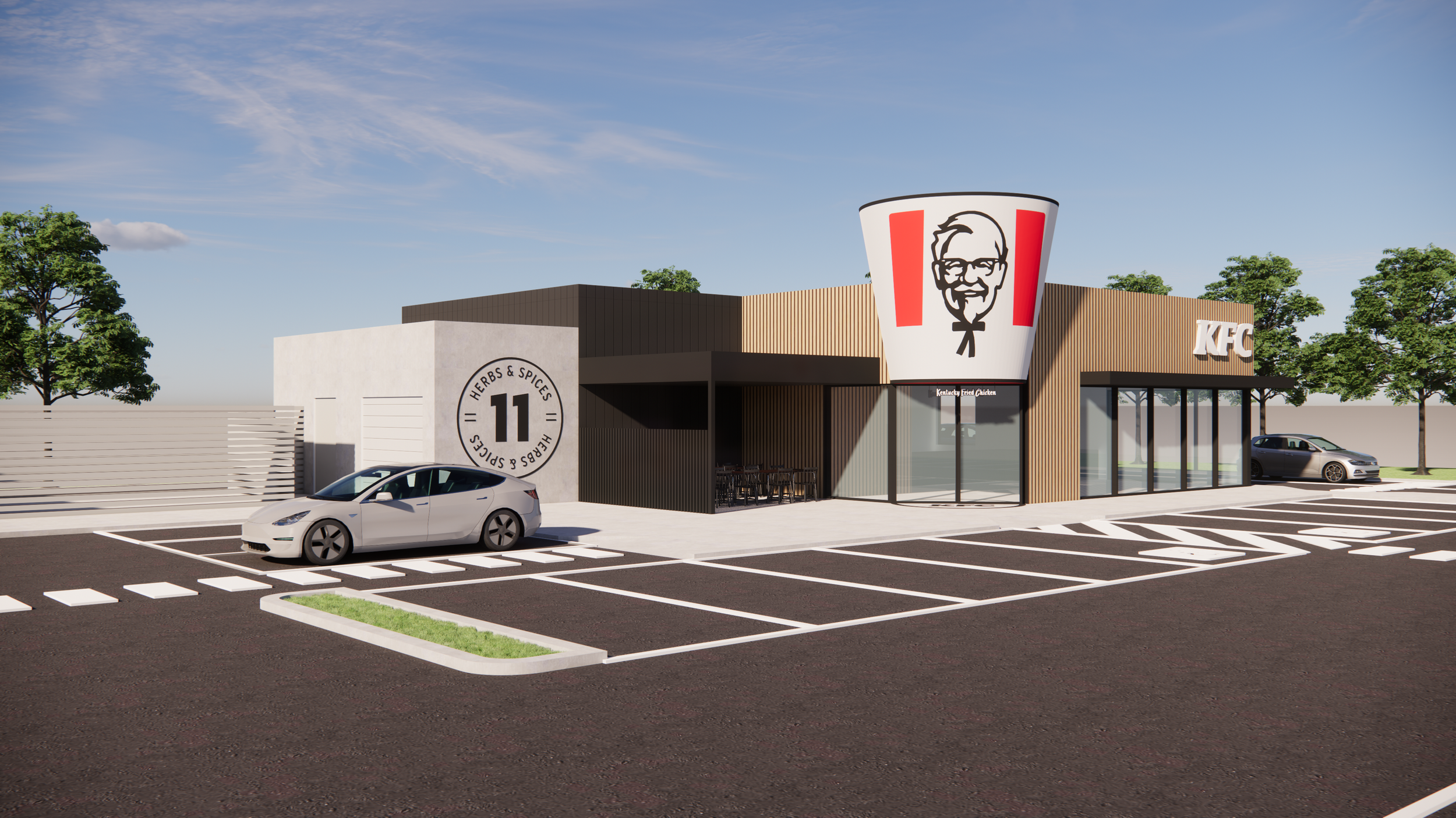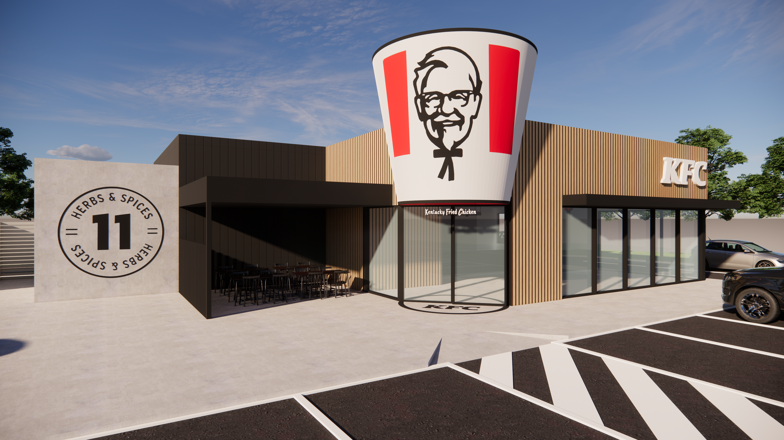 At KFC St Germain we transformed a familiar fast food model into a modern inviting destination. The design combines bold forms, clean lines and generous glazing to create a strong visual connection between the interior and the surrounding streetscape. Inside the space, careful spatial planning guides customer flow and enhances comfort while supporting efficient staff operations. Material choices and detailing were selected to elevate the everyday dining experience and reinforce the brand identity. The result is a vibrant contemporary environment that balances functionality with aesthetic appeal and creates a welcoming presence in the community.
